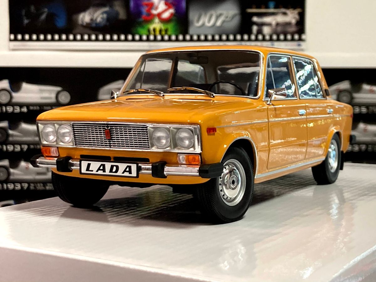 Lada 1600 2106 1976 Ocker Yellow 1/18-as méretű, új állapotú Triple9 modell. Eredeti dobozában, fémből készített igényes kidolgozású. Az ajtók nem nyithatóak.