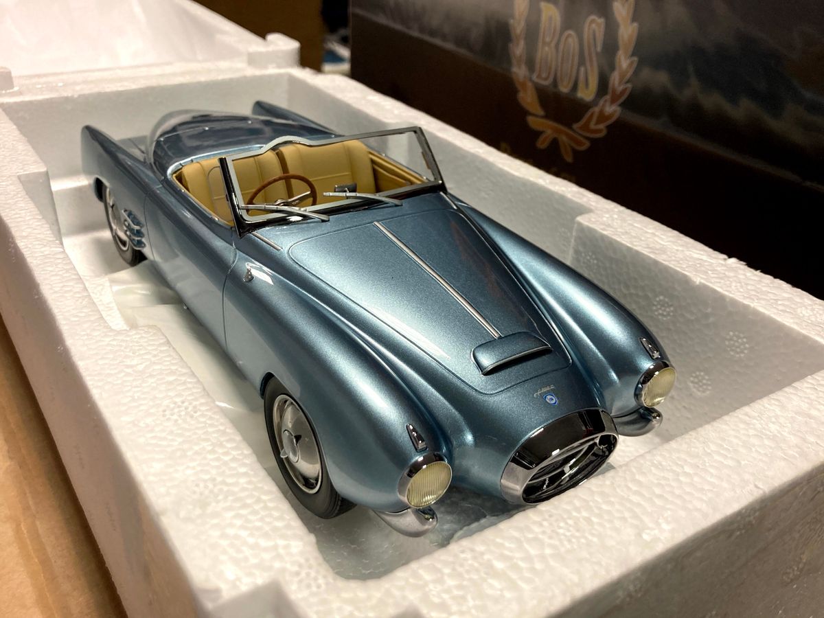 Lancia Aurelia PF200 Pininfarina 1953 Limited Edition 252!!! 1/18-as méretarányú, új állapotú, BOS-Models modell, gyári dobozában, a képeken látható színben és kivitelben. Részletgazdag kidolgozású, resin modell. Az ajtajai nem nyithatóak.